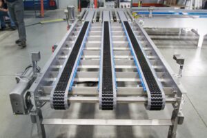 این نوع کانوایرها به طور معمول با عرضی بین 30 تا 40 سانتیمتر و طول نامحدود طراحی میشوند. میزهای جانبی این کانوایرها به صورت افقی و یکپارچه با بدنه نوار نقاله قرار میگیرند و برای راحتی اپراتورها طراحی میشوند.